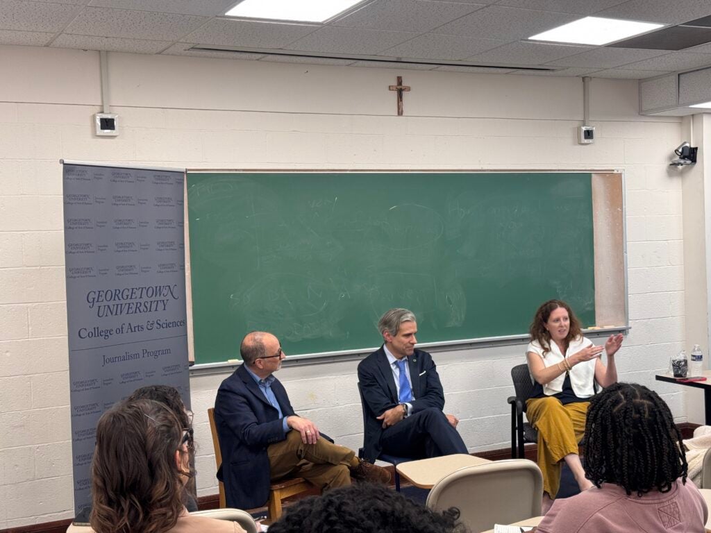 The program’s interdisciplinary approach, rooted in Georgetown’s deep strengths in the study of politics, public policy, international relations and law, also highlights the university’s commitment to public service and social justice. It encourages real-world experience and the development of core reporting skills, along with a grounding in of the theoretical, historical and literary context necessary for a fuller understanding of the journalist’s role and responsibility in society.